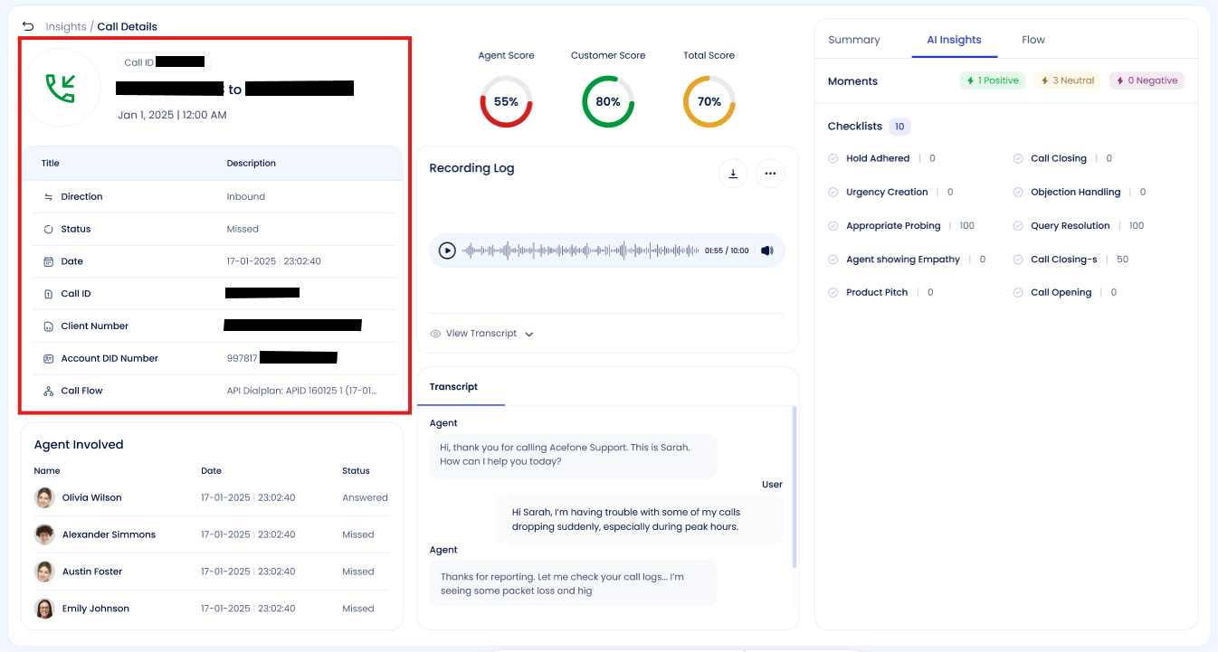 📌 All information here is system-generated and reflects exactly what happened at the telephony level.
