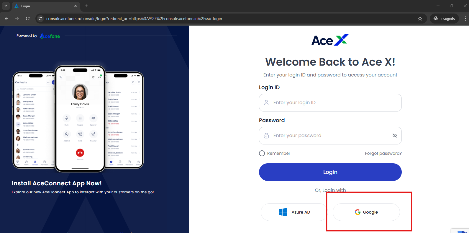 Acefone Google SSO Integration