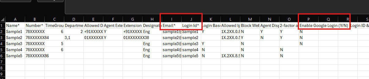 - To enable Google Login, enter Y in column P for each user.