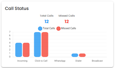 The bar chart compares total calls vs missed calls across different call solutions, allowing teams to identify gaps, missed opportunities, or performance issues.