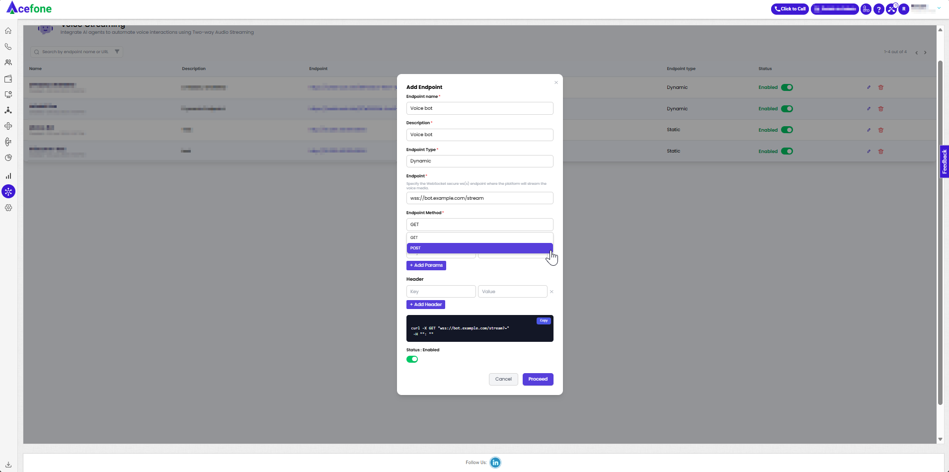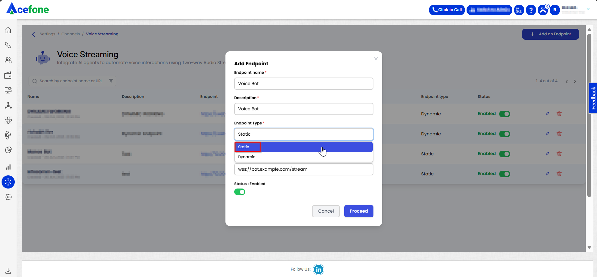 1️⃣ Set Up the VOICE Bot (Static or Dynamic Endpoint)