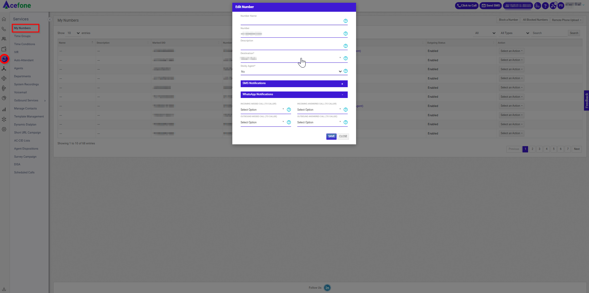 - In the Destinations configuration, select the VOICE Bot configured in Step 1